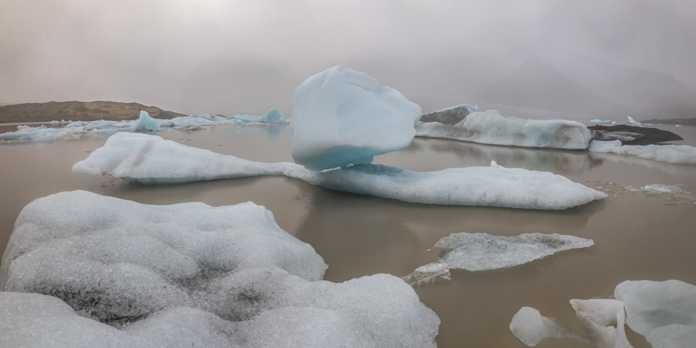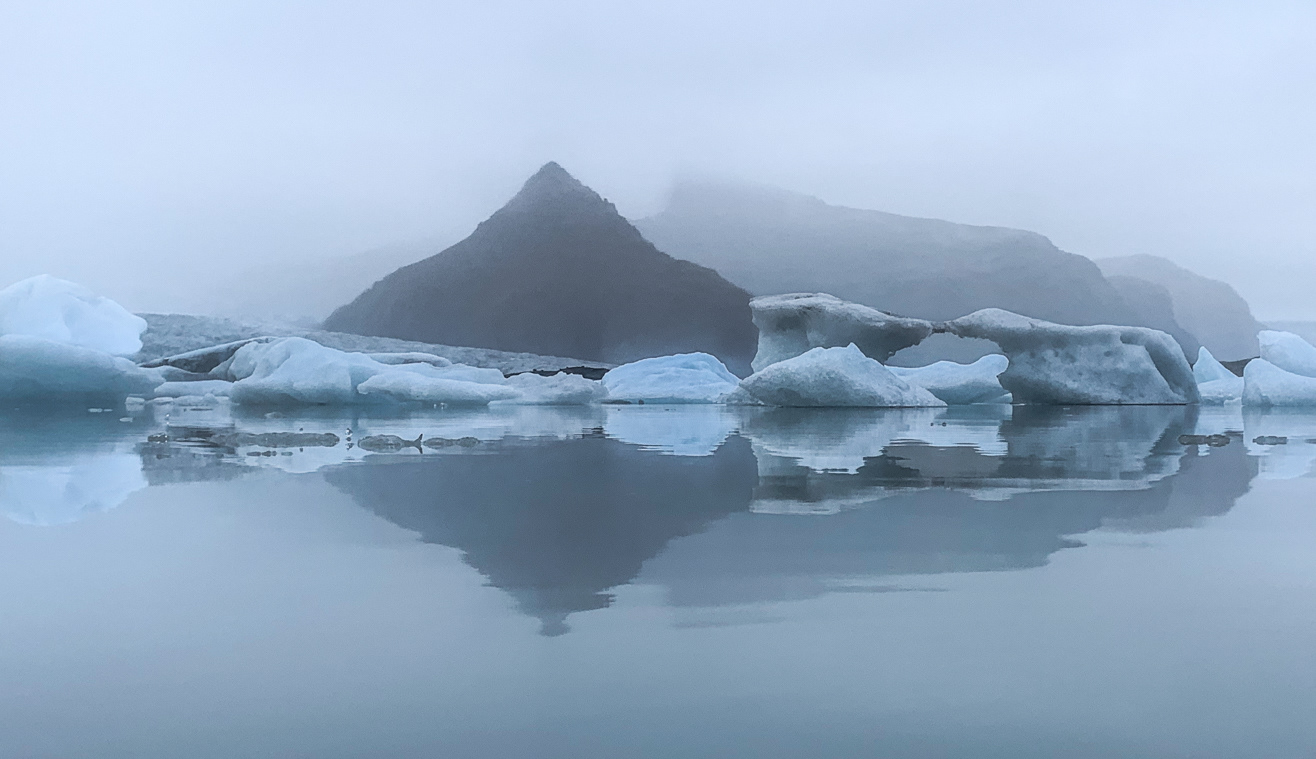 The combination of a heavy fog and drizzle put a damper on any sounds at the Fjallsárlón Glacial Lagoon. What we could hear, however, was the drips of water coming off of the melting icebergs.