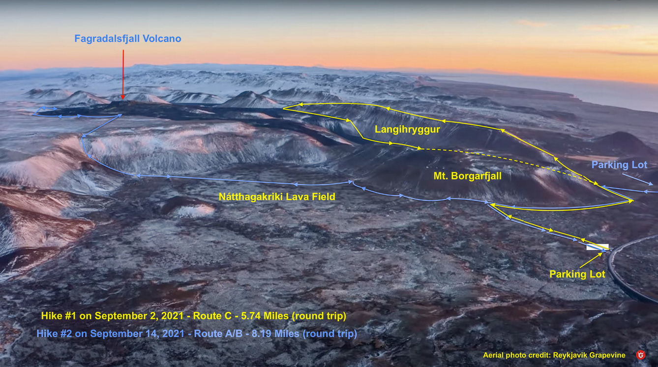 Route C looking at the Nátthagi lava field - Fagradalsfjall volcano, Reykjanes peninsula, Iceland