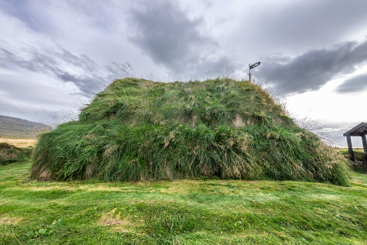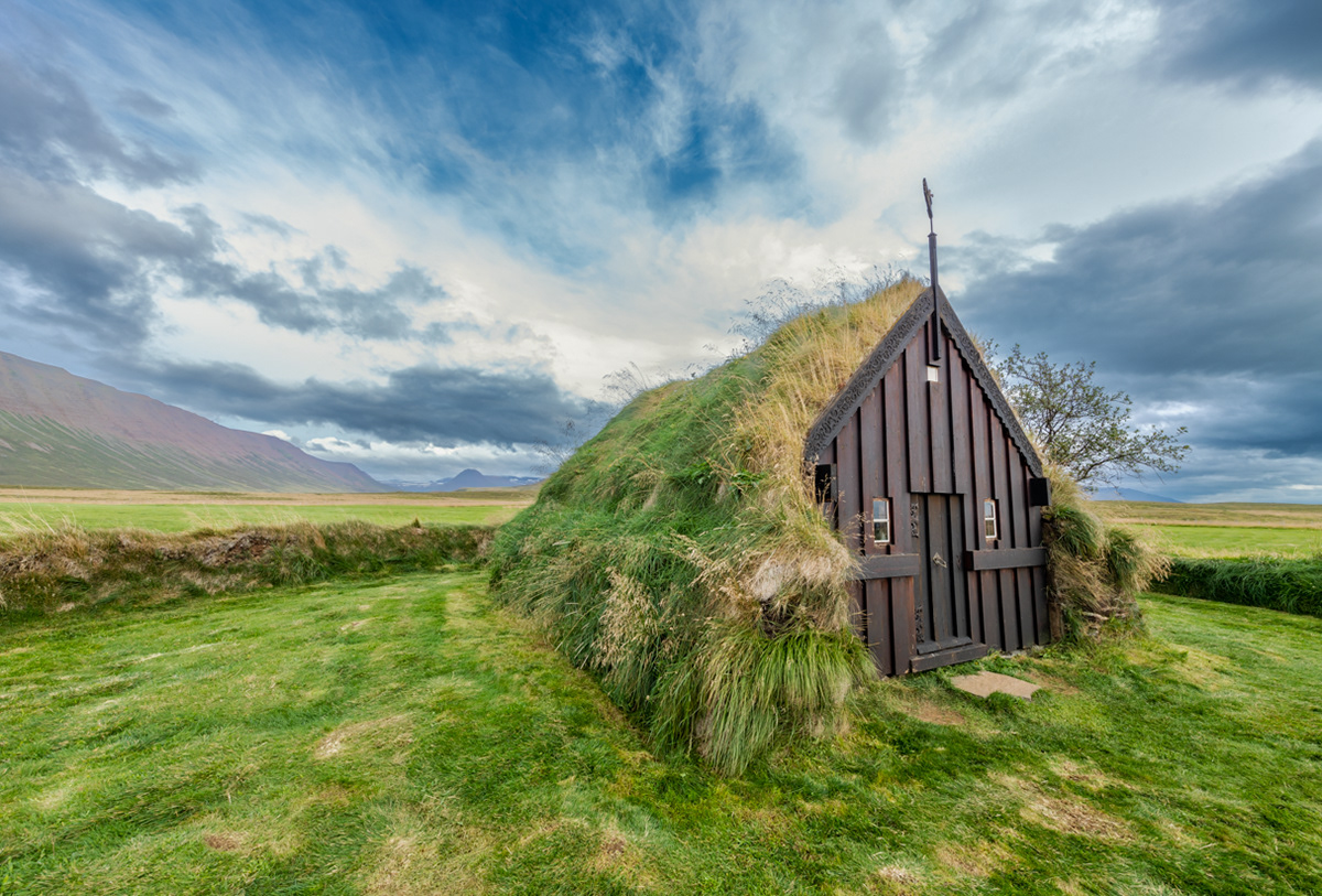 A side view of the Grafarkirkja turf church - the Chapel at Gröf in Höfðaströnd