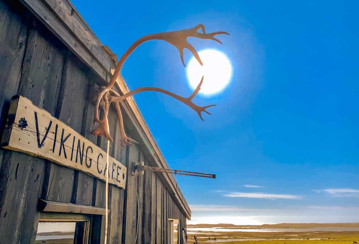 Reindeer antlers catching the sun at the Viking Cafè at Vestrahorn.