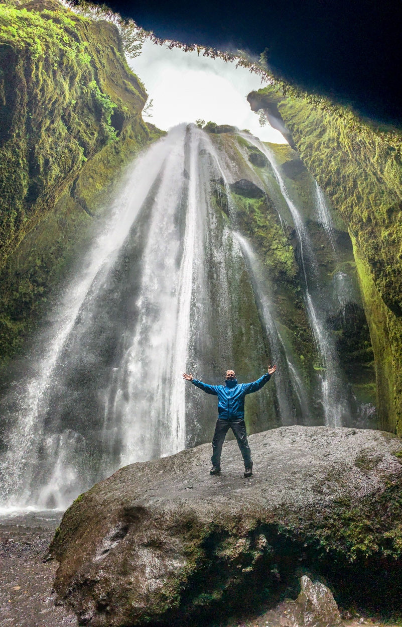 Gljufrabui (or Canyon Dweller) is a hidden waterfall a short walk north of Seljalandsfoss.