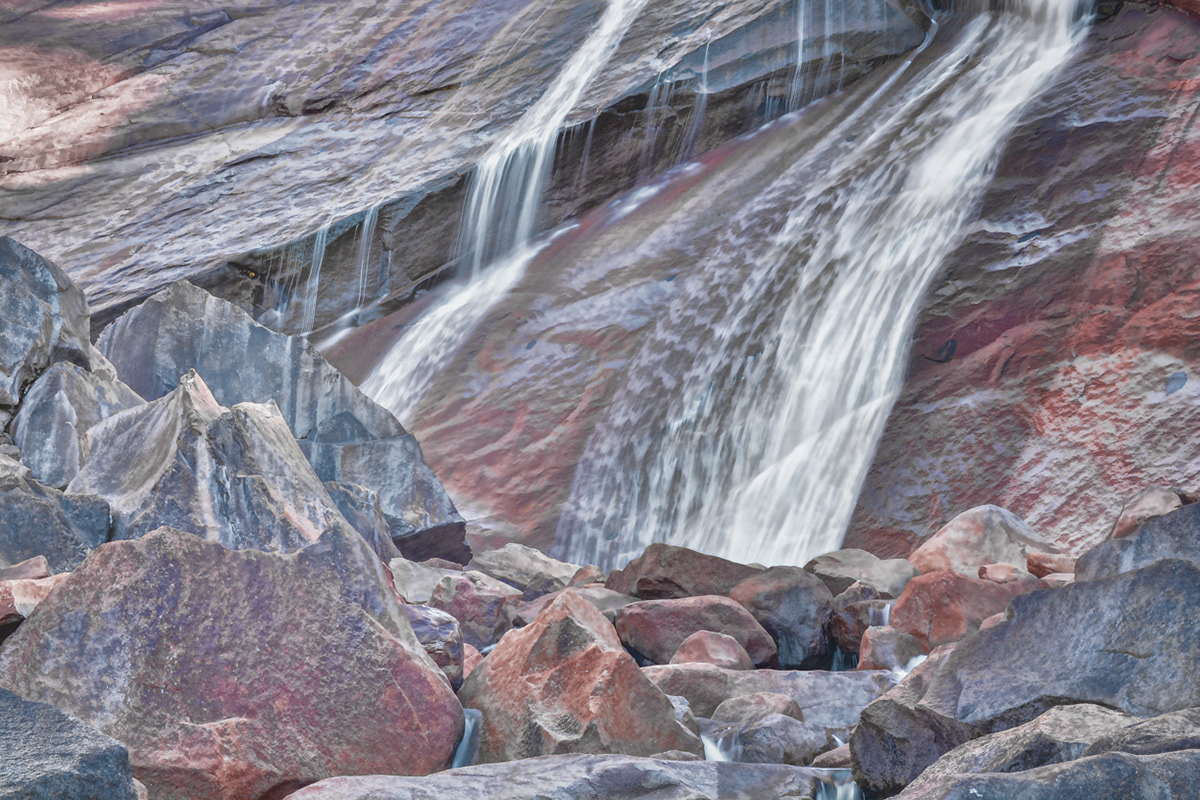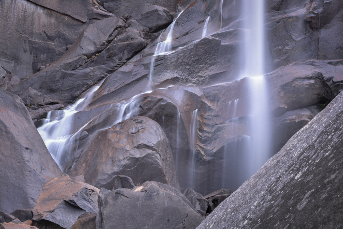 Water cascading through rocks on the Merced River just below Vernal Falls on the Mist Trail.