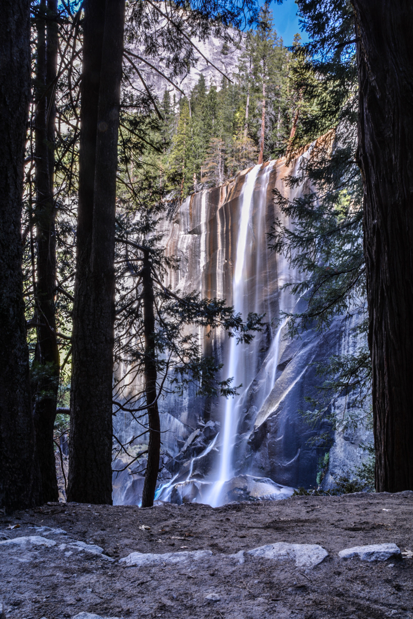 The base of Nevada Falls on the Mist Trail.