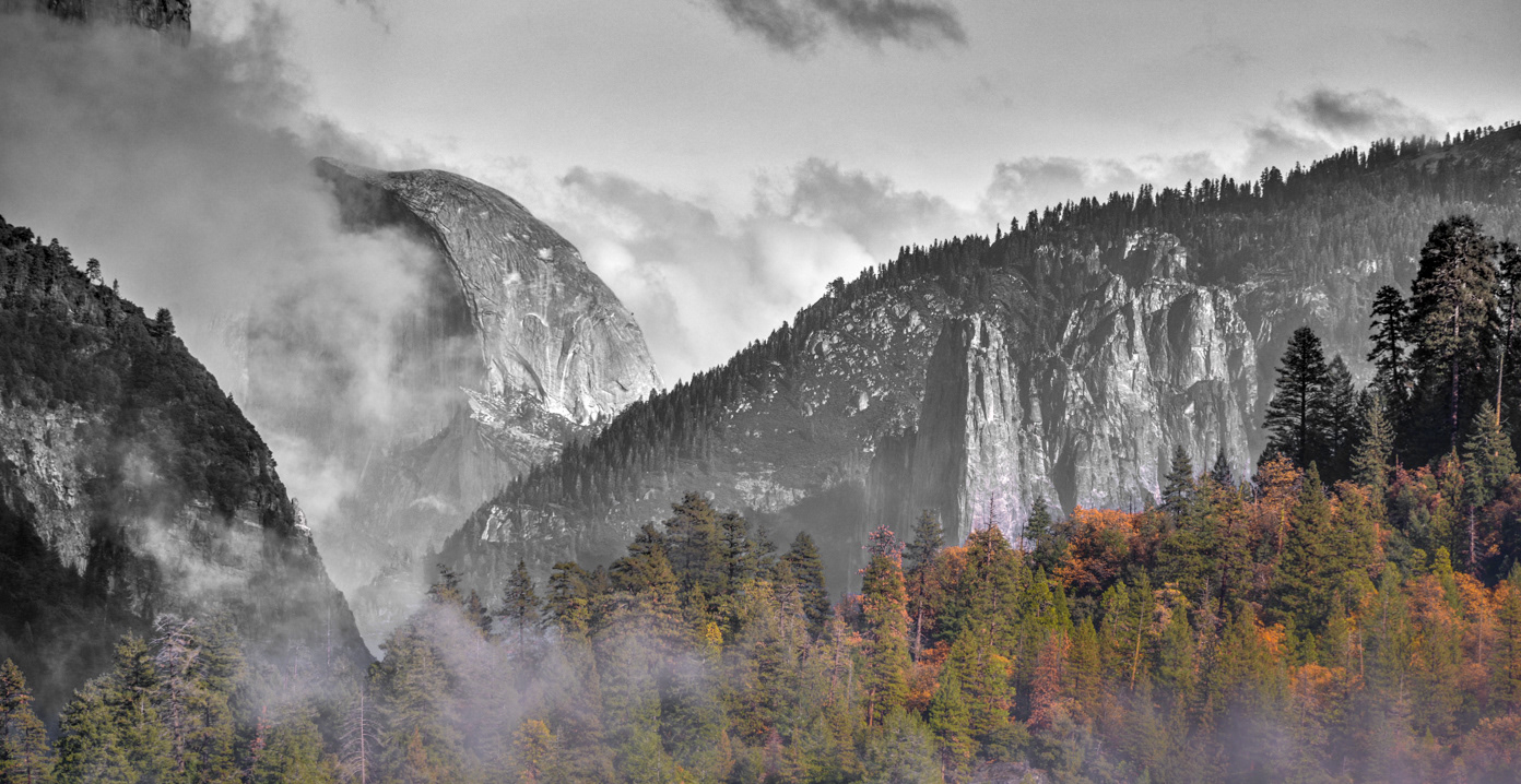 Looking across the valley at Elephant Rock from Big Oak Flat Road just above the Cascades.